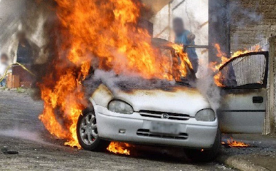 Uma mulher de 31 anos que se encontra apresentando problemas depressivos, após uma discussão banal com o seu companheiro de 35 anos e totalmente descontrolada passou atirar pedras no veículo tipo corsa, de cor azul, pertencente ao seu companheiro e em seguida ateou fogo, deixando o veículo totalmente destruído pelas chamas.