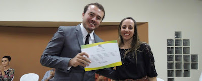 Felipinho recebendo o diploma das mãos de Dra. Gabriella