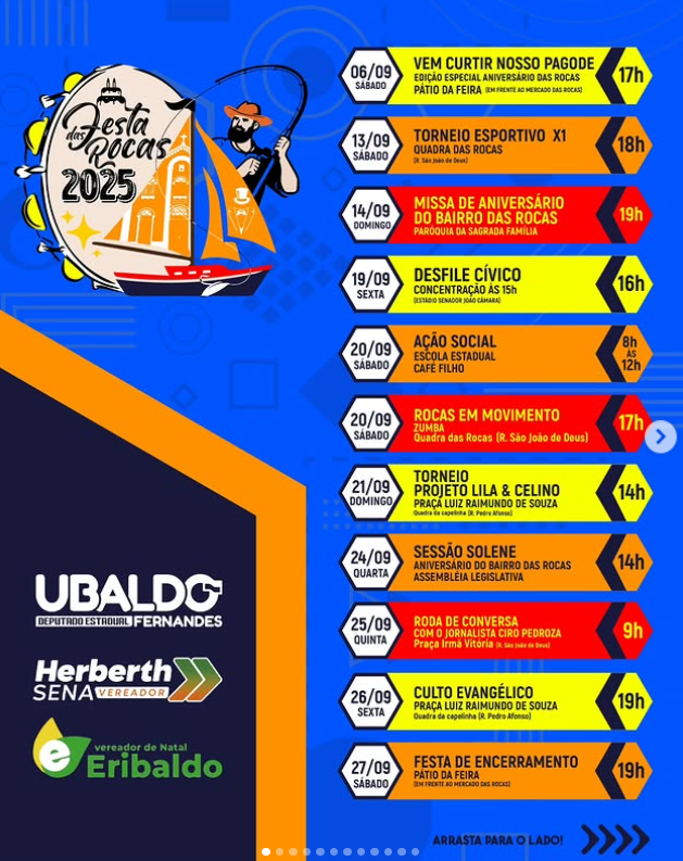 Morador e apaixonado pelo bairro das rocas em Natal, o Deputado Estadual Ubaldo Fernandes é o principal apoiador da Festa das Rocas 2025.