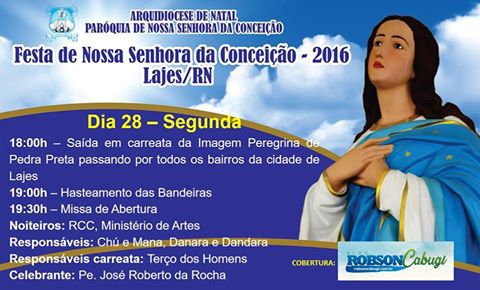 As festividades da padroeira de Lajes, Nossa Senhora da Conceição, tem início hoje (28). Veja a programação da abertura.