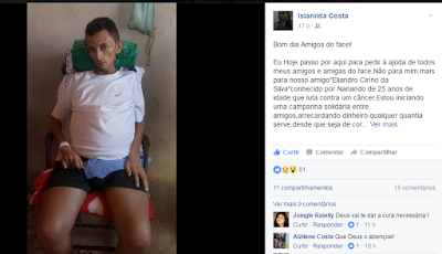 Vários jovens dos municípios de Pedra Preta e Jandaíra se mobilizaram nesta segunda (07) nas redes sociais para fazer uma campanha solidária de ajuda ao jovem Eliandro Cirino da Silva, popularmente conhecido como “Nanando”.
