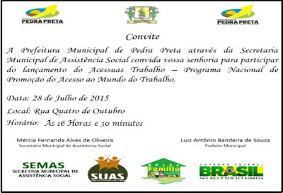 Em Pedra Preta, ACESSUAS TRABALHO será inaugurado nesta terça (28)