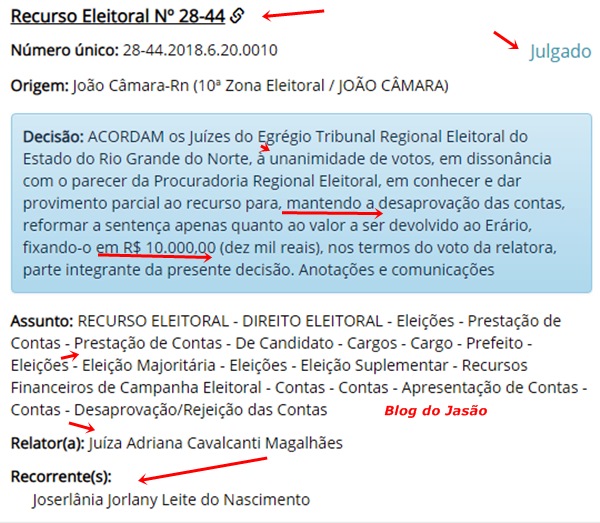 Nesta quarta feira (11), o TRE/RN julgou pela desaprovação das contas da filha da ex prefeita de João Câmara Gorete Leite. Alem das contas desaprovadas, Lana Leite terá que devolver 10 mil reais ao erário, lembrando que o processo ainda cabe recurso.
