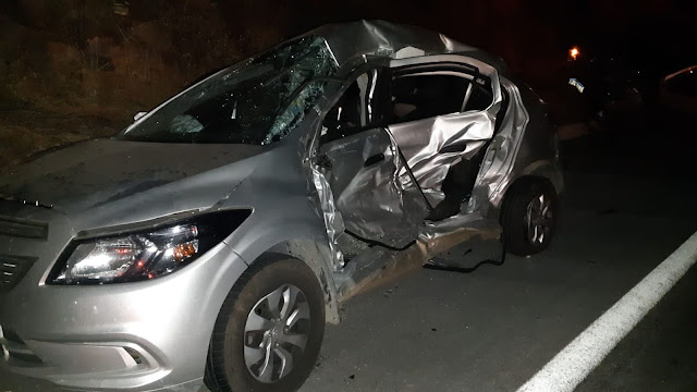 Um homem de 47 anos morreu na noite de sexta-feira (11) ao bater o carro que dirigia em um caminhão e, na sequência, em outro veículo que estava no sentido contrário da pista. O acidente aconteceu na BR-304, na altura do município de Itajá, interior do Rio Grande do Norte. Outras duas pessoas tiveram ferimentos leves.