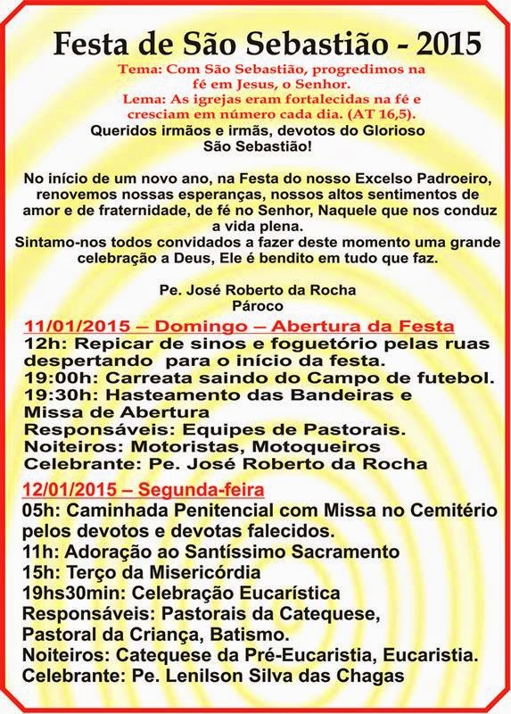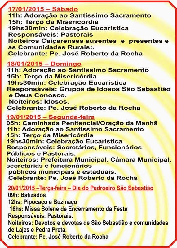 Na noite desta segunda (12), teve início na cidade de Caiçara do Rio do Vento, os festejos do Padroeiro São Sebastião. A missa de abertura foi celebrada pelo Pe. Zezinho e a programação se estende durante toda semana.