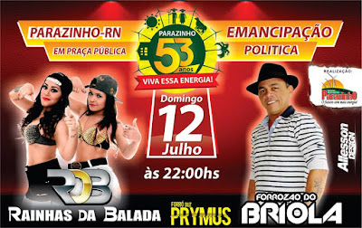Parazinho: Forrozão do Briola e Rainhas da Balada animarão a Festa de 53 anos de Emancipação Política