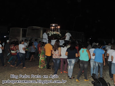 A imagem chegou à cidade por volta das 19h15m e foi recebida por muitos fiéis que seguiram em procissão até à Capela São Francisco de Assis, onde foi realizada a missa, conduzida por Pe. Zezinho.