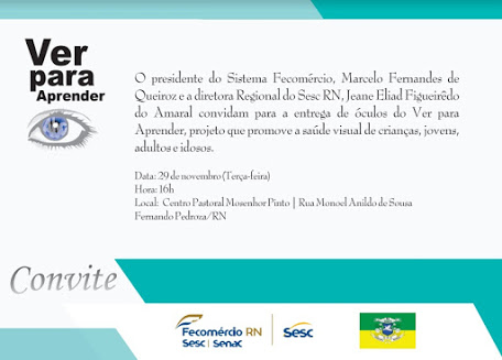 Na próxima terça (29), o Serviço Social do Comércio do Rio Grande do Norte (Sesc-RN) fará a entrega de óculos de grau gratuitamente no município de Fernando Pedroza através do projeto “Ver para aprender”.